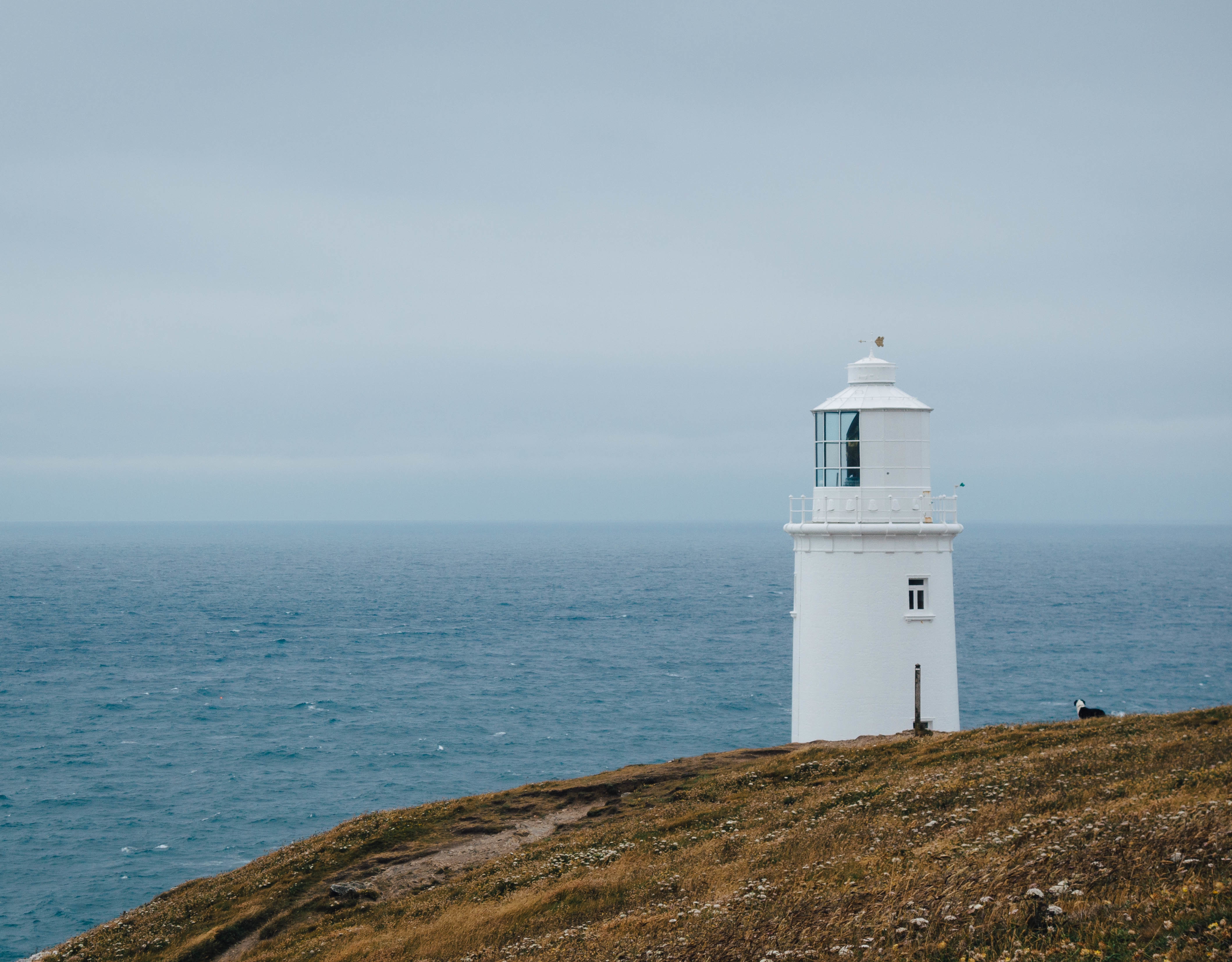 Trevose Head Lighthouse in England with a beautiful view of an ocean