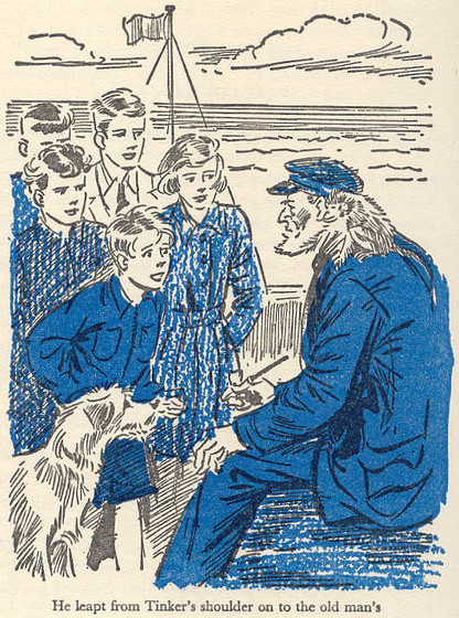 The Five find JB, sitting at the docks with his pipe just as described. JB is not so complementary about his great grandson, however. George seems a perfectly friendly and capable young man until you hear JB talk about him.