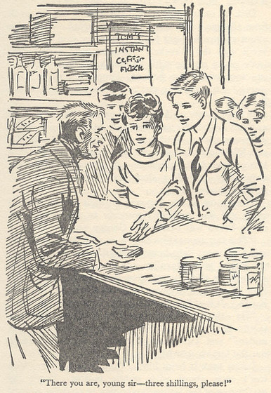 Page 111 Anne says she doesn’t want to go down to the shaft. Yet the illustration on p112 shows her as being present. And the kids show scant regard for the health of old Jeremiah, purchasing for him on p126, (Heaven forbid!) a pack of tobacco!