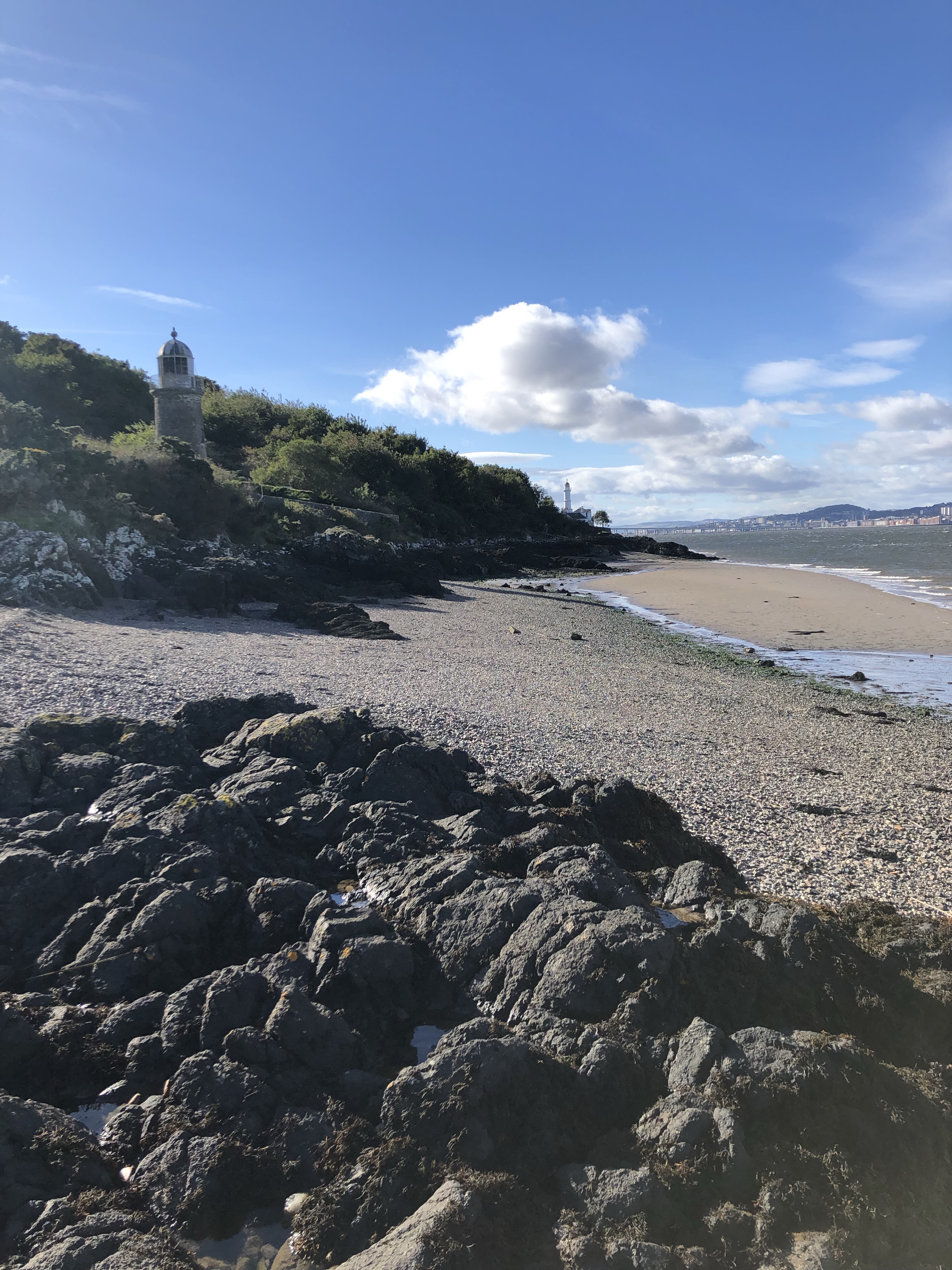 The lighthouse nearest the camera is the Tayport Low lighthouse, formerly used to guide ships into the River Tay. The Tayport High (or West) lighthouse is still operational, and is just a few minutes’ walk along the river bank. The Low lighthouse was replaced by the Tayport Pile lighthouse (a strange boxy thing on legs in the river) which is also not operational any more.