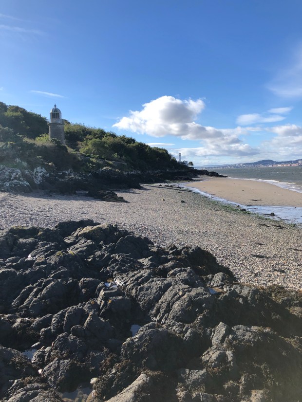 As for me, I love it as it’s a great place to find sea-glass and pottery as well as being very beautiful. The lighthouse is in the garden of a house on the low cliff, and I’m very jealous. I’d love to live there with my own lighthouse, and have my own back gate right onto the beach.