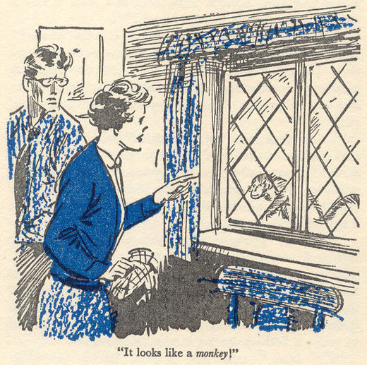 Poor Fanny is now being subjected to two angry professors (though I don’t recall Quentin ever being referred to as Prof Kirrin), the Five and a mischievous monkey.