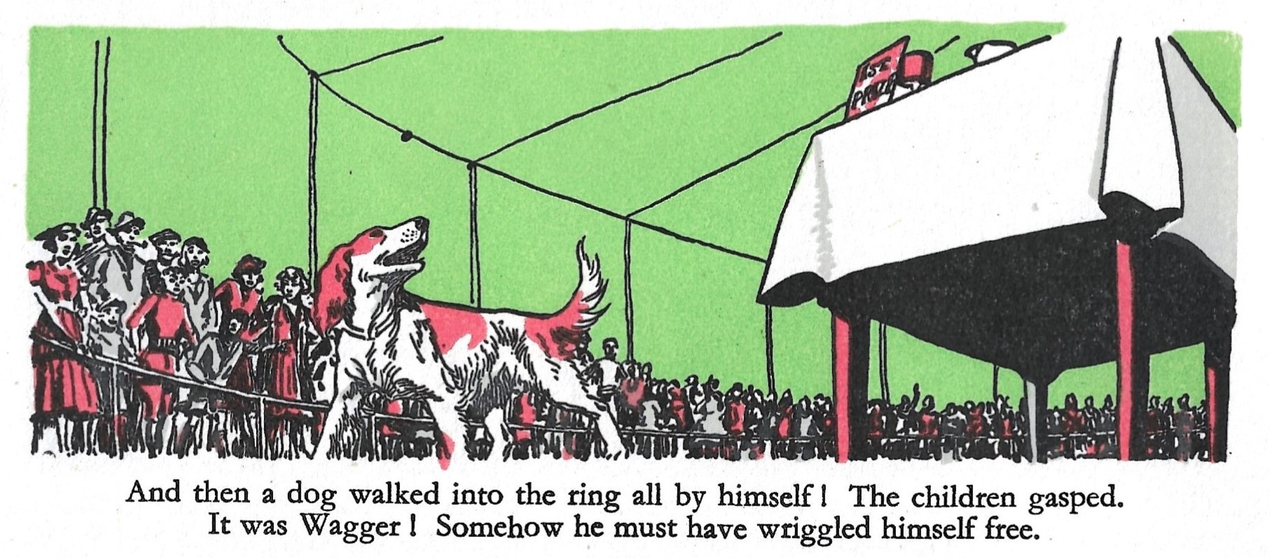 The illustration below is from The Eighth Holiday Book, but we are reading it in Enid Blyton’s Holiday Stories. It’s not illustrated so when I paused after those lines Brodie made his own guess that it would be Wagger – while the illustration in the Holiday Book (and presumably in Sunny Stories where it first appears) actually gives it away. Mind you, so does the title – Wagger Goes to the Show – but I hadn’t read that out and he can’t read yet!