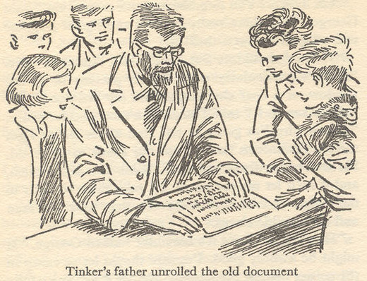 - There’s an illustration of them all watching Prof Hayling unroll the document detailing ownership of the field but this happens while the boys are off to Kirrin.