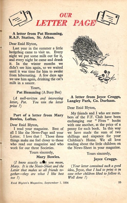 Lastly, I do like the idea in Joyce’s letter. You’d have to increase it quite a bit to make it worthwhile now – one inflation calculator suggests that 1p would now be worth 35p today. Even at 50p it’s still affordable for most children and the money could go to a good cause, even if Blyton’s specific charities are no longer running.