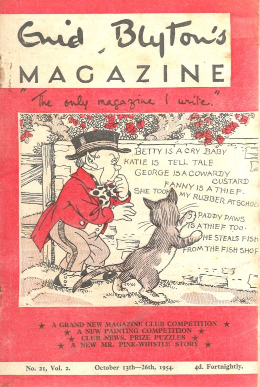 We have a Famous Five Club. Our meetings are held in a garage. We put up deck-chairs for walls, because we only Have part of the garage To sit on we have old cushions. We have a library with all our books we could find. Susan, (who is George in our club) has a cat that takes the place of Timmy. We have bought him a badge. (His real name is Nicky.)