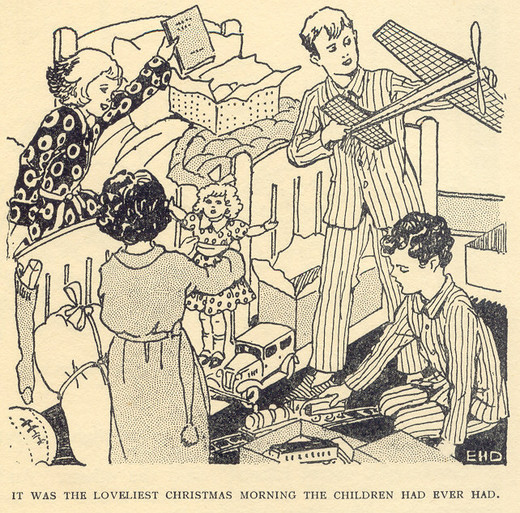 “This is better than Christmas in the cave!” said Nora, unpacking a great big smiling doll with curly golden hair.