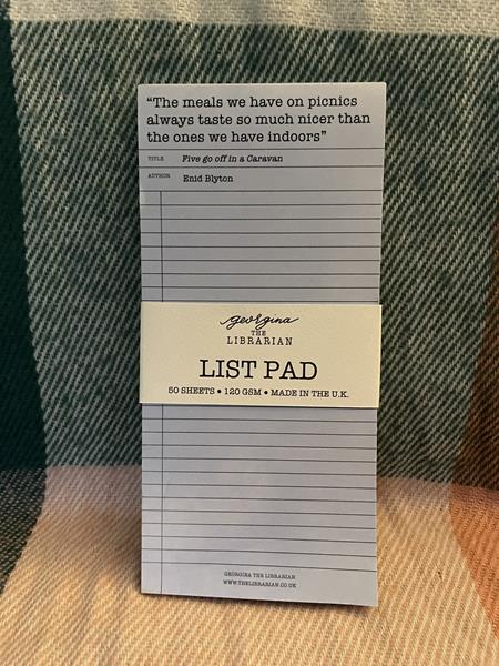 Then, from the appropriately-named Georgina the Librarian‘s site, this magnetic notebook with a Famous Five quote on it. This’ll go on the fridge for shopping lists as soon as the current one is finished.