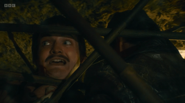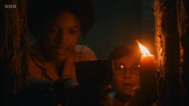 [We had to pause the episode to discuss this – however on rewatching on my laptop it seems better, so it may have been partly the colour balance/brightness settings on my TV]