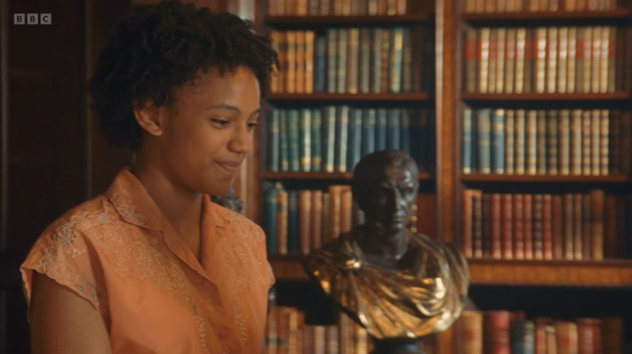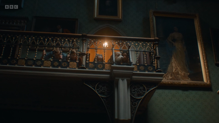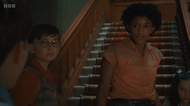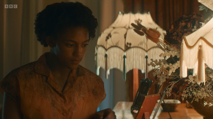 Fiona: It’s a shame – they don’t seen to be lighting Aunt Fanny well. She has darker skin and you couldn’t see her well sitting on the sofa – but maybe it was intentional to have her in the background?