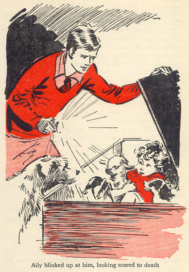 When Anne says it’s a pity Timmy can’t ski, he’ll have to be left at the hut he made me turn back to the endpapers to see Timmy left behind as they ski.