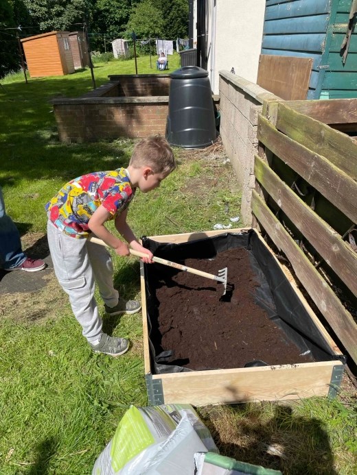 raking a raised bed