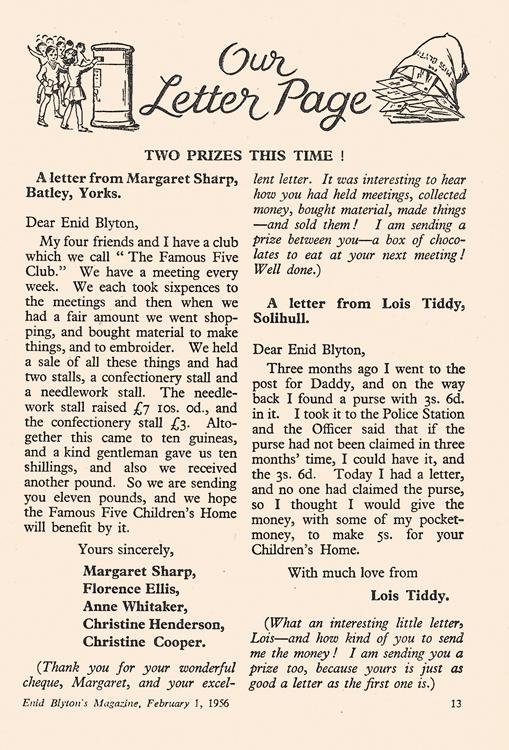 Lois’ letter got me thinking about all the usual and unusual ways money has been raised and then donated to Blyton’s various causes. And also just how much of it! Perhaps when I have finished with the letters pages (only 87 more to go) I will make a list of all the money’s sources and the total. Of course, it’ll only be a tiny fraction of the true information but I think it will be interesting nonetheless.
