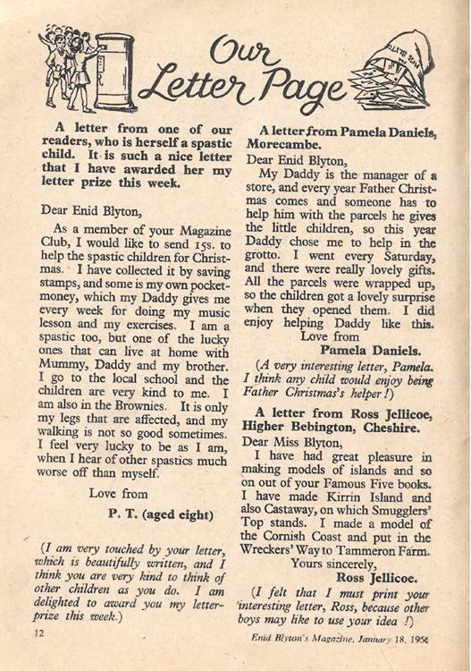 (I am very touched by your letter, which is beautifully written, and I think you are very kind to think of other children as you do. I am delighted to award you my letter- prize this week.)