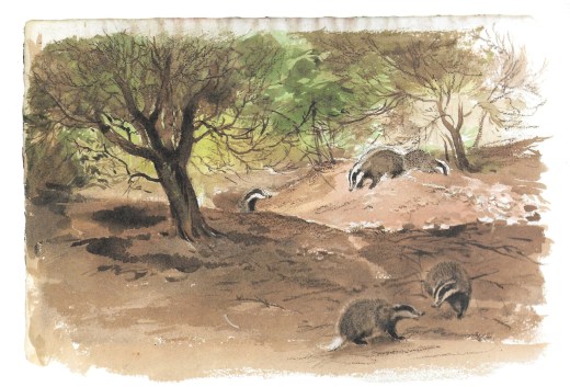 There are also a dozen or so full and half-page colour works, such as the badgers that sketchy Eileen above was observing.