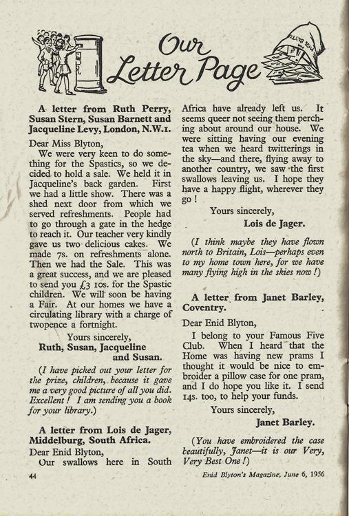 The S-word has appeared in several previous letters pages now and I am starting to assume that Blyton only recently began working with a relevant charity or home hence the many letters all of a sudden.