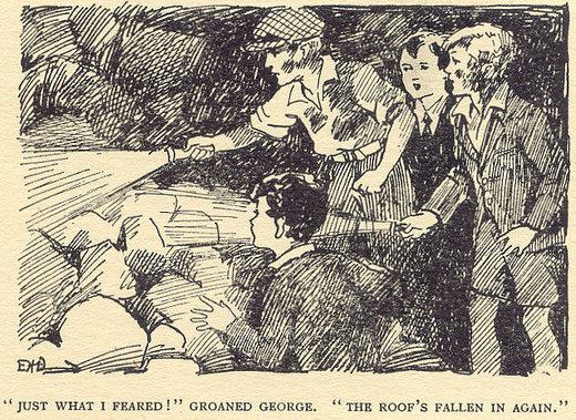 The rockfalls had him very tense, I think he half-expected them to be crushed to death any moment. Not very Blytonian!