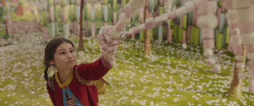 Later, Beth is relieved when Dad says they have power and wifi and immediately gets on her tablet to chat to her friends. The conversation is not the delight she had imagined as her friends laugh at the flower in her hair, which she got while up the Faraway Tree. She’s then upset when the power goes out, but she finds her father cycling on a stationary bike to produce the electricity. She doesn’t say anything but she slips away, looking ashamed of herself. At the end when her friends come to the grand pasta sauce opening gala, they embrace her new life.