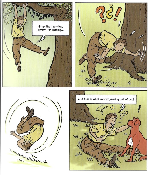 Two pages are spent on jokes about Dick’s perch and him jumping/falling out of the tree.
