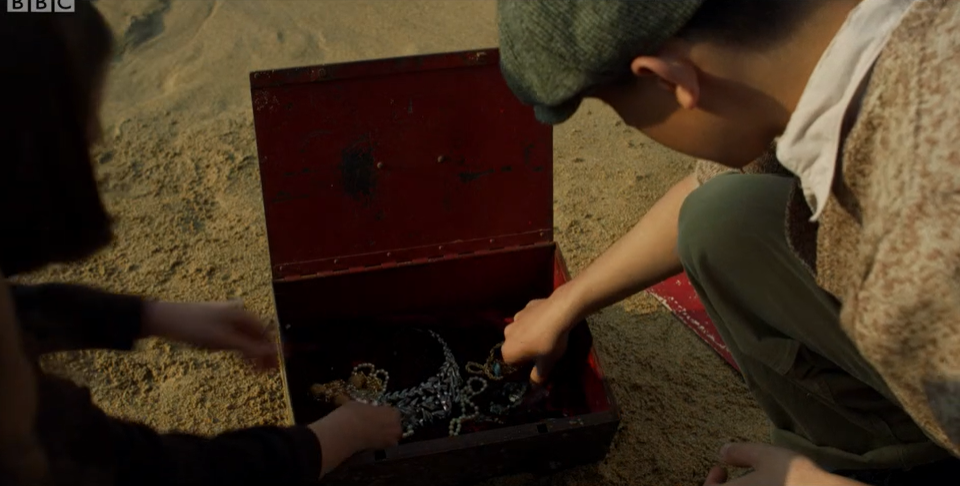 The treasure hunting story also suffered from a lot of stop-starting and getting forgotten about. I know the ghost story was similar but that just seemed to work better. It was also patently obvious – even for those who hadn’t read the book surely – that the treasure buried under the cross on the cliff would, after the cliff had crumbled, be likely to still be in the vicinity. Or at least that would be a good place to start looking!