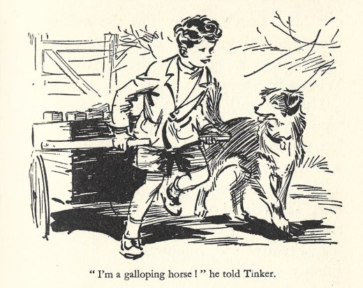 At The Naughtiest Girl’s School it is Julian who plays the tricks. At first he sticks to curious noises – a pot bubbling over, a hen clucking, turkeys gobbling, violins being tuned and so on to amuse the other children and disrupt lessons and meetings a little.